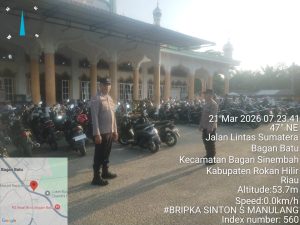 ROKAN HILIR, RiauPro.com – Dalam rangka memberikan rasa aman dan nyaman kepada masyarakat saat pelaksanaan Sholat Idul Fitri 1447 H / 2026 M, jajaran Polsek Bagan Sinembah melaksanakan kegiatan pengamanan di sejumlah masjid yang berada di wilayah hukumnya, Sabtu (21/3/2026) pagi.