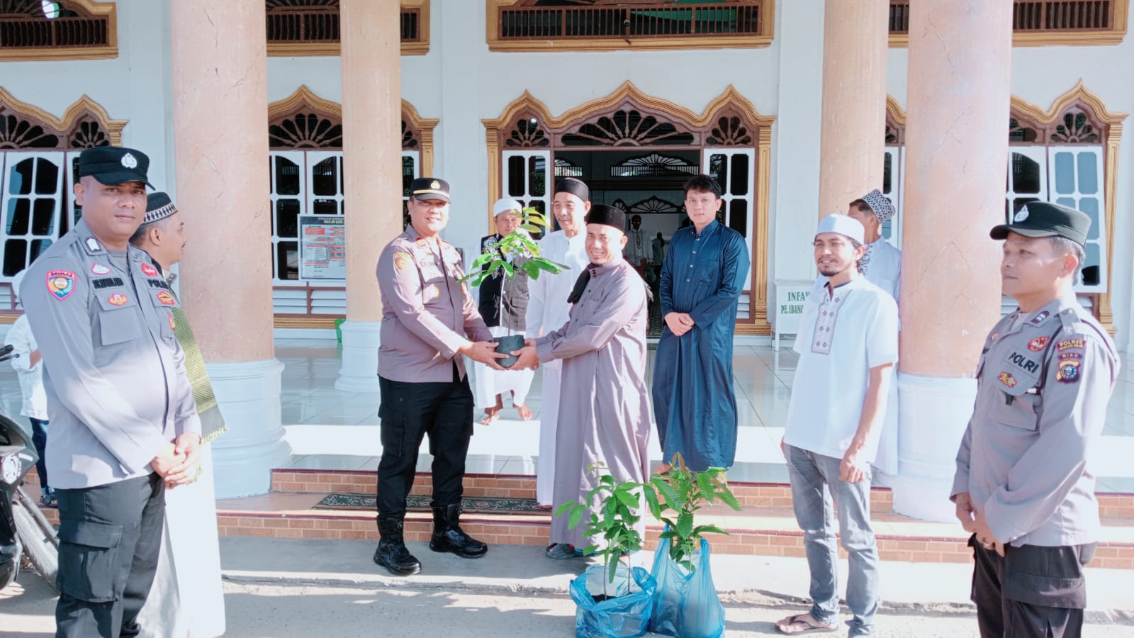Selain melaksanakan pengamanan,Kapolsek Bagan Sinembah AKP BONARDO PURBA SH juga melaksanakan kegiatan sosial berupa pemberian bibit pohon kepada pengurus masjid. Kegiatan ini merupakan bentuk kepedulian Polri terhadap kelestarian lingkungan sekaligus mengajak masyarakat untuk bersama-sama menjaga penghijauan di lingkungan sekitar.