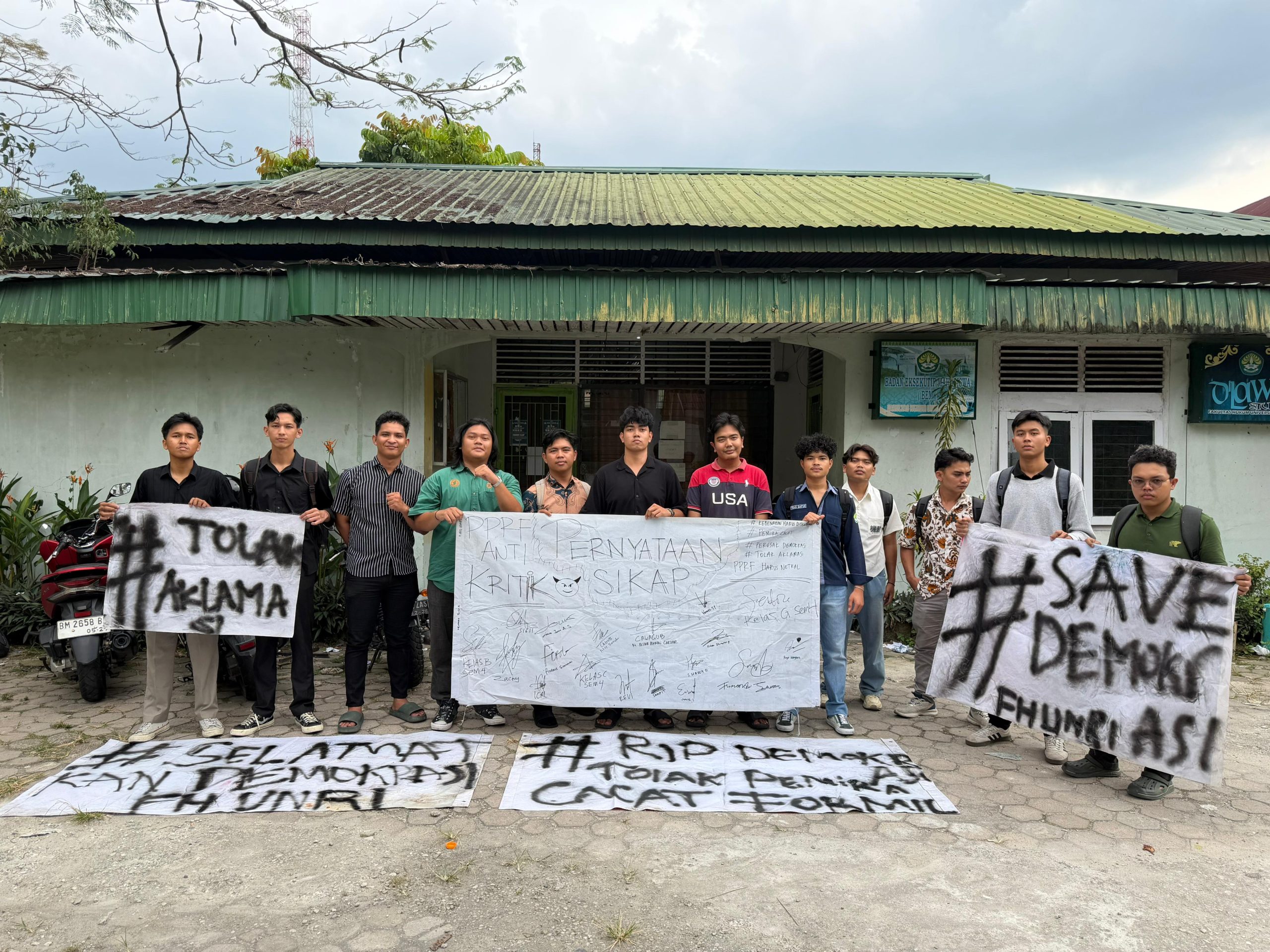 Orator aksi menyampaikan bahwa kedatangan mereka bukan untuk mencari kericuhan, melainkan sebagai bentuk kepedulian dan desakan agar aparat penegak hukum bersikap adil dalam menangani kasus serupa di seluruh Indonesia.