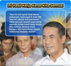 Mentri Pertanian umumkan cadangan Beras Pemerintah tembus angka 5 juta ton lebih, Rekor Tertinggi Sepanjang Sejarah bukti nyata swasembada pangan Indonesia