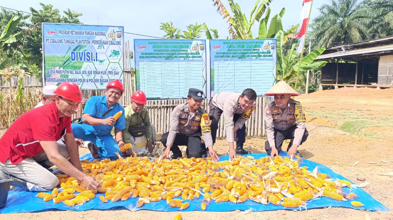 Rohil, Bagan Sinembah ll RiauPro.com – Dalam rangka dukung program Asta Cita Presiden Republik Indonesia ketahanan dan swasembada pangan, Polsek Bagan Sinembah bersama PT. Salim Ivomas Pratama (SIMP) laksanakan kegiatan panen jagung di Kebun Cibaliung, Kepenghuluan Pasir Putih, Kecamatan Balai Jaya, Kabupaten Rokan Hilir, pada Selasa (08/07/2025).