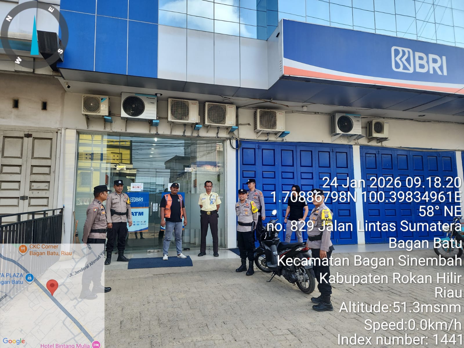 Kegiatan yang berdasarkan Surat Perintah Kapolsek Bagan Sinembah Nomor Sprin / 01 / I / 2026 tersebut dilakukan di beberapa titik keramaian, antara lain Swalayan Nicho Mart, toko-toko di sekitar Jalan Jenderal Sudirman, Bank BRI Cabang Bagan Batu, dan Bank Mestika, yang semuanya berlokasi di Kelurahan Bagan Batu Kota, Kecamatan Bagan Sinembah.