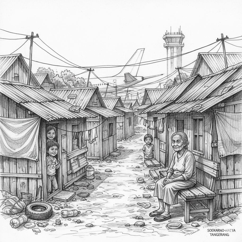 Bandara Soekarno-Hatta adalah simbol globalisasi, tapi bagi warga di sekitarnya ia justru menjadi simbol ketimpangan. Bandara membawa ribuan tenaga kerja dari luar Tangerang, sementara warga lokal tetap menjadi buruh informal di pagar bandara sendiri.