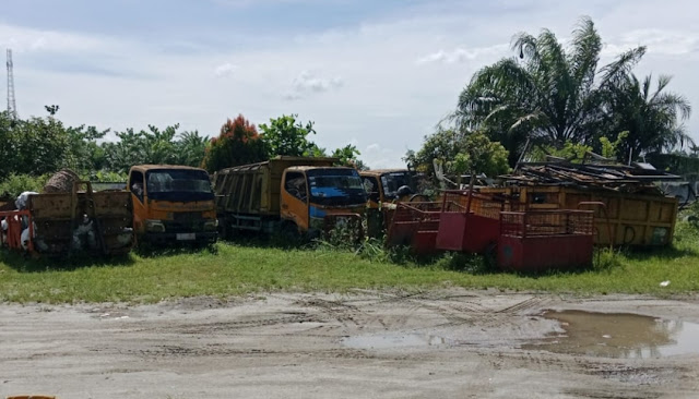 Batu Bara. RiauPro.com -Hasil pantauan awak media Terkuak beberapa unit dump truk dan pick up sampah aset milik Dinas Perumahan, Kawasan Permukiman dan Lingkungan Hidup (Disperkim LH) Kabupaten Batu Bara, yang saat ini dibiarkan terlantar dan jadi besi tua alias rongsokan.