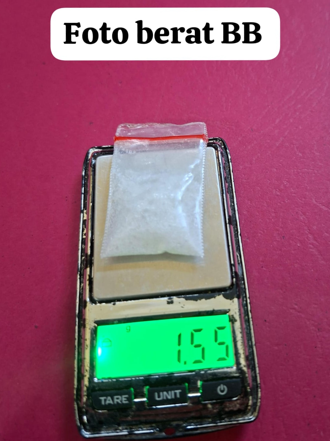 Dalam proses penggeledahan yang disaksikan oleh Ketua RT setempat, petugas menemukan satu paket kecil narkotika jenis sabu dengan berat kotor sekitar 0,16 gram. Barang bukti tersebut sempat dibuang oleh salah satu tersangka ke luar jendela saat petugas datang.