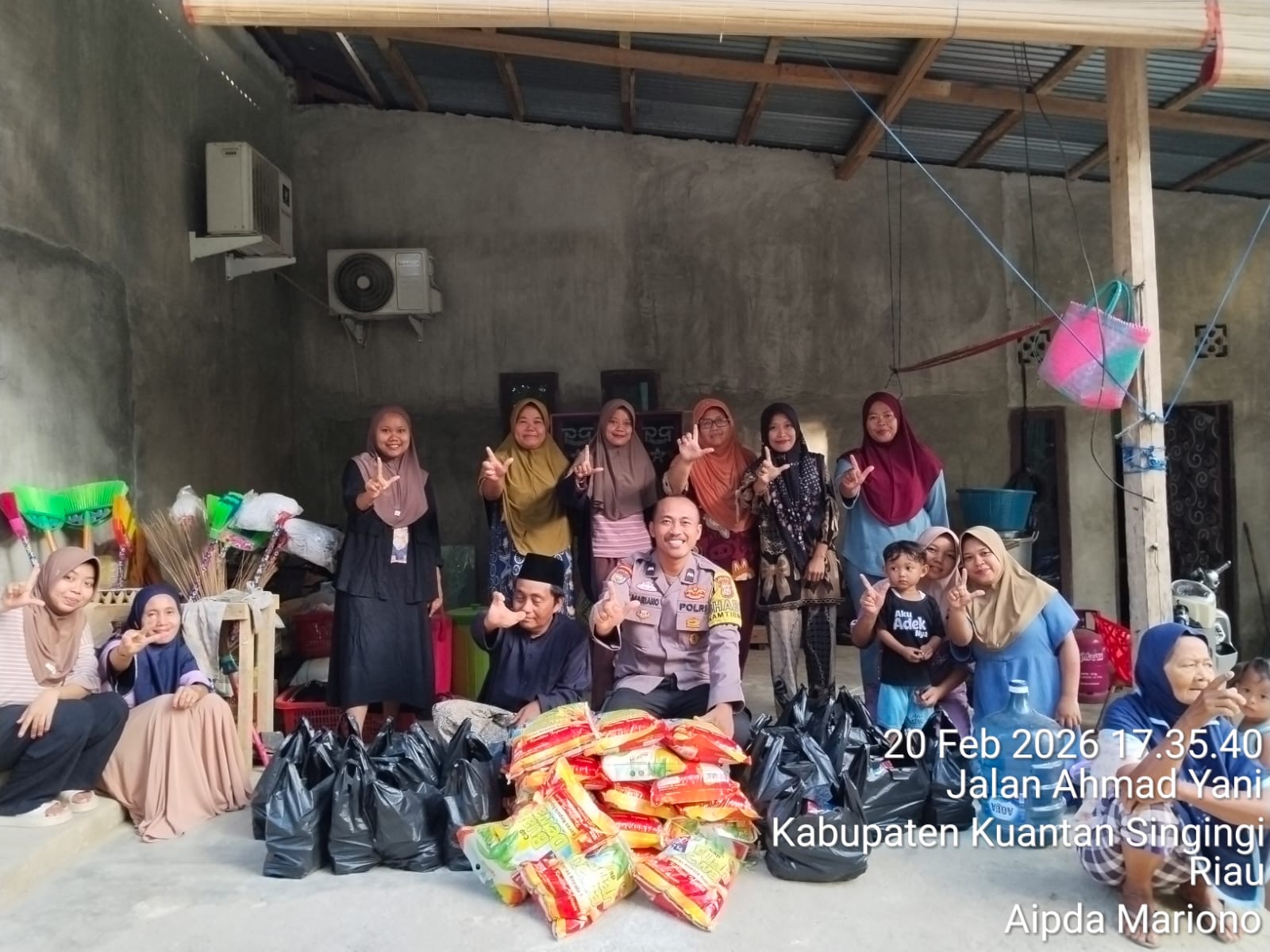 RiauPro.com, Kuansing – Momentum bulan suci Ramadhan 1447 Hijriah tidak hanya dimanfaatkan untuk meningkatkan ibadah spiritual, tetapi juga kepedulian sosial terhadap sesama. Hal inilah yang dilakukan oleh Bhabinkamtibmas Polsek Pangean, Aipda Mariono, yang turun langsung ke tengah masyarakat untuk membagikan puluhan paket sembako. Jum’at (20/02)