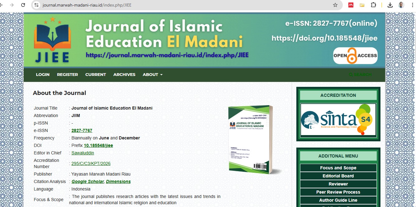 Journal of Islamic Education El Madani yang lebih dulu terakreditasi Sinta 4 di reakreditasi tahun 2026 dan insyaallah akan disusul Journal of Islamic Law El Madani dan Qonun Istiqshad El Madani Journal yang dalam proses penilaian akreditasi pada sistem ARJUNA (Akreditasi Jurnal Nasional).
